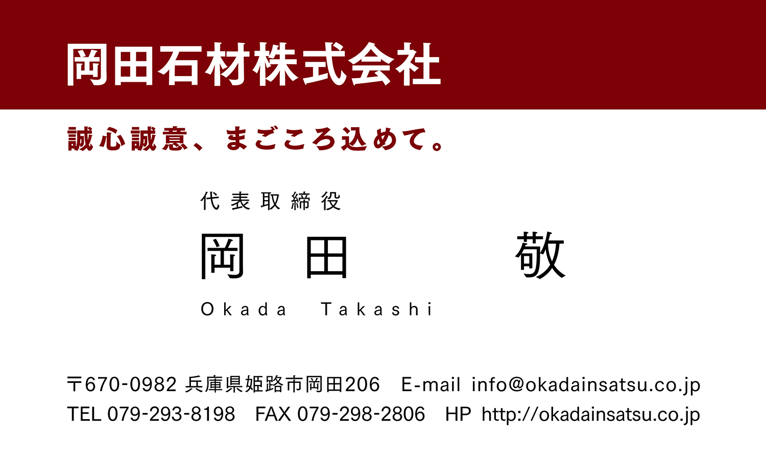 Okada Printing Ltd. / Tel.079.293.8198 / 9:00a.m.-6:00p.m. Mon.-Fri.